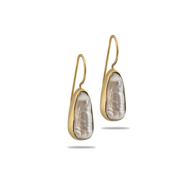 Χειροποίητα κρεμαστά σκουλαρίκια σε ασήμι 925 επιχρυσωμένο και ημιπολύτιμες πέτρες mother of pearl