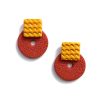 Μεγάλα αφηρημένα σκουλαρίκια κρίκοι, χειροποίητα από πολυμερικό πηλό σε μοντέρνο λεοπάρ σχέδιο με έντονο κόκκινο