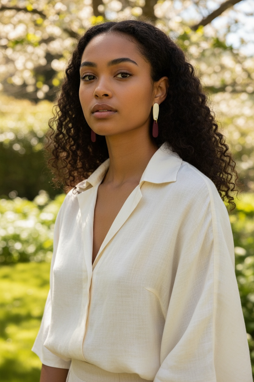 Χειροποίητα κρεμαστά σκουλαρίκια φτιαγμένα από πολυμερικό πηλό σε μίνιμαλ design σταγόνας σε συνδυασμό 2 χρωμάτων, μπορντό και εκρού.