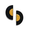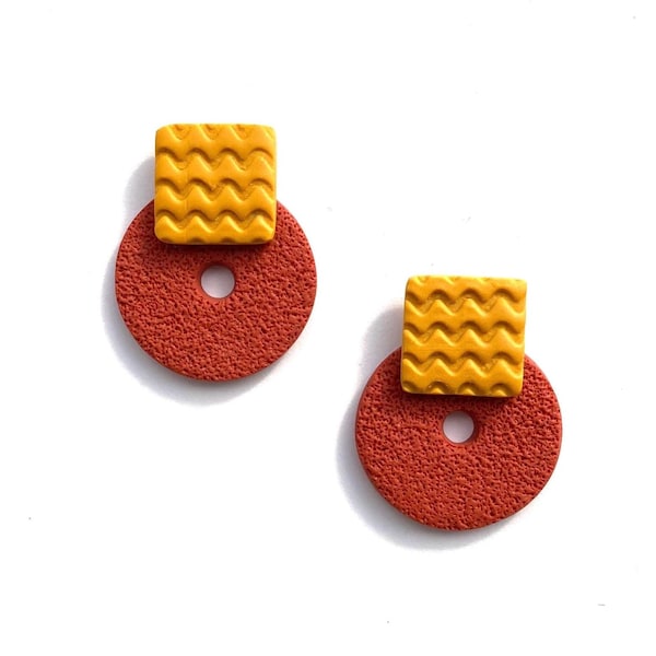 Σκουλαρίκια κρίκοι μεσαίου μεγέθους, χειροποίητα από πολυμερικό πηλό σε τερακότα με κυματιστό μοτίβο σε χρώμα μουσταρδί.