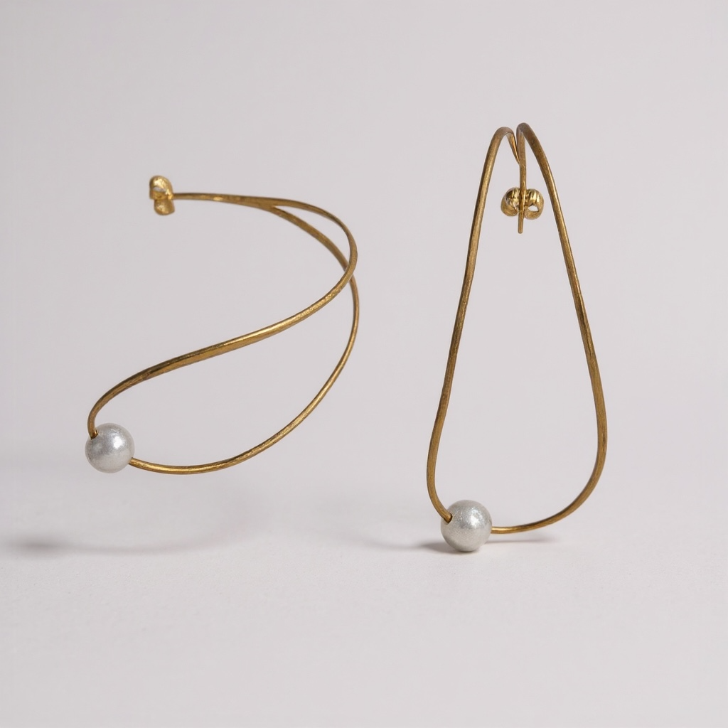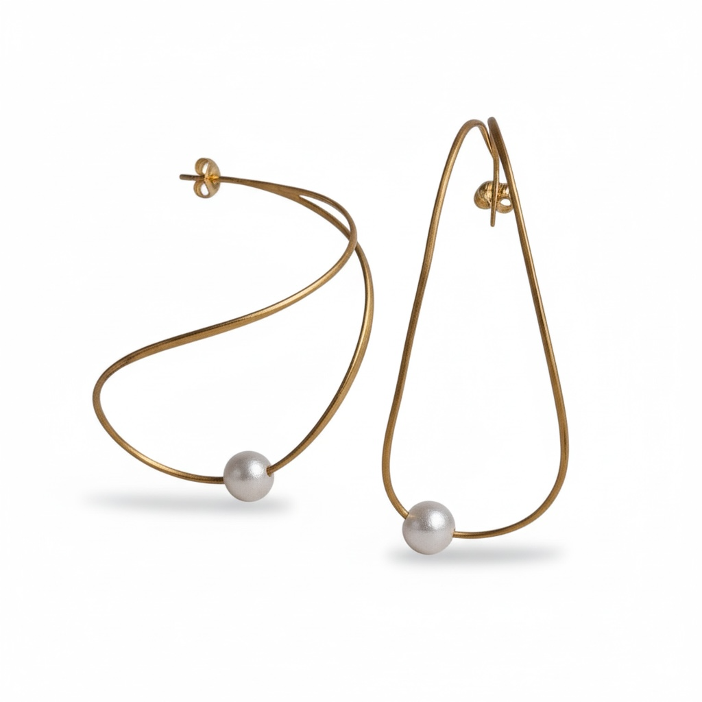 Χειροποίητα σκουλαρίκια σε ασήμι 925 επιχρυσωμένο σε ματ όψη και μαργαριτάρια