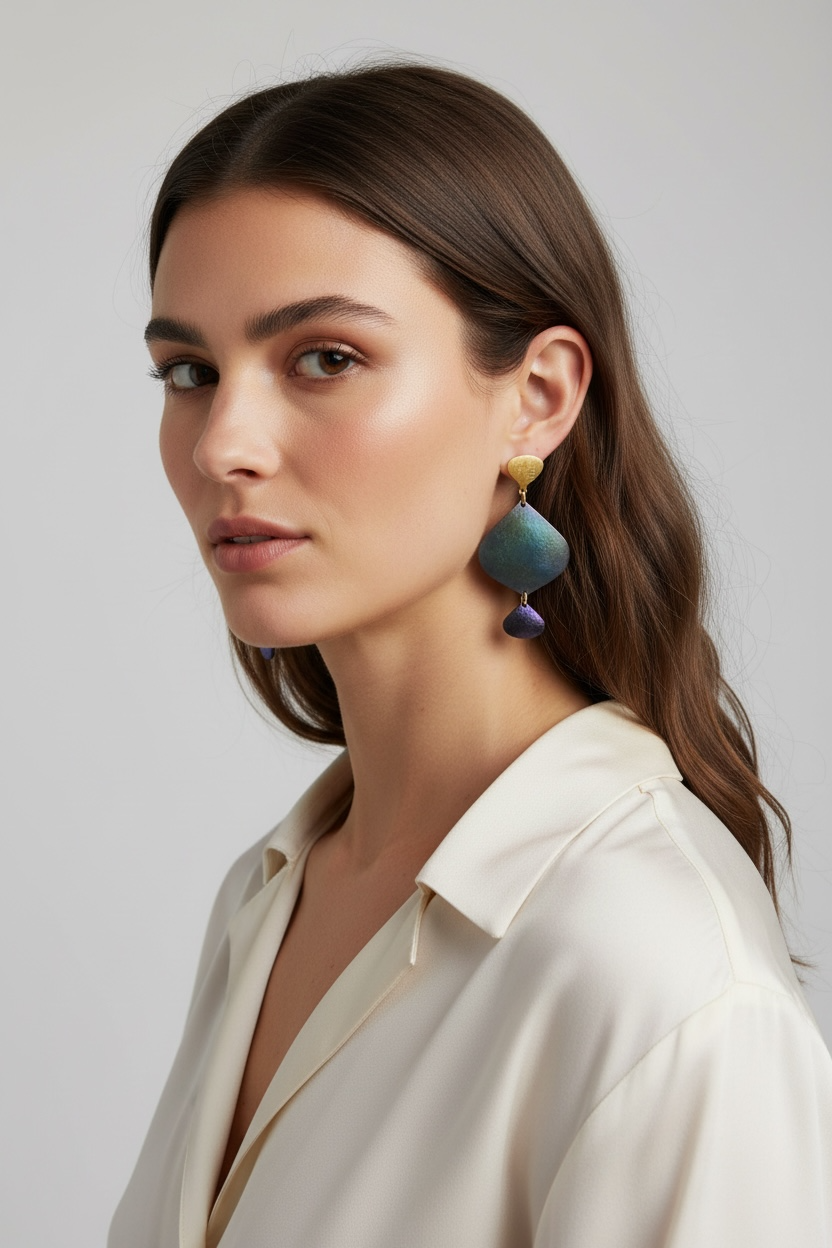 Χειροποίητα σκουλαρίκια τιτάνιο και ασήμι 925 επιχρυσωμένο