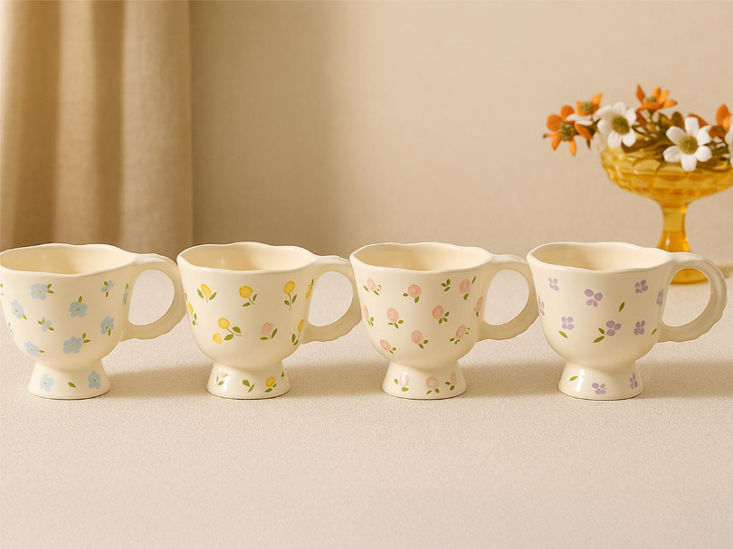 Οι κεραμικές κούπες “Retro Flower” φέρνουν μια αίσθηση νοσταλγίας με τα ρομαντικά φλοράλ μοτίβα και το κομψό τους σχήμα. Με απαλή απόχρωση κρέμας και λεπτομέρειες σε παστέλ χρώματα, θυμίζουν κλασικό σερβίτσιο με μοντέρνα πινελιά.