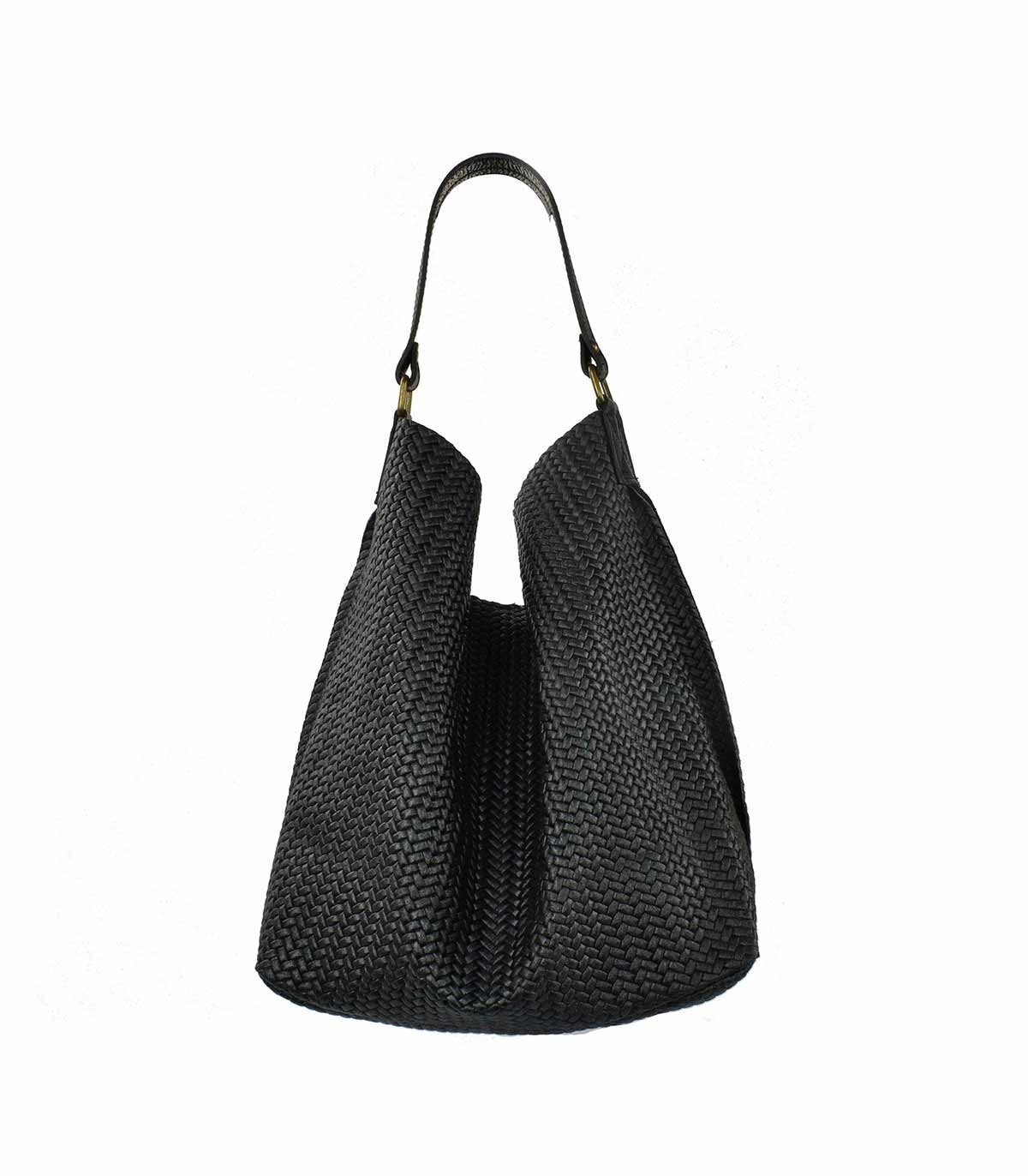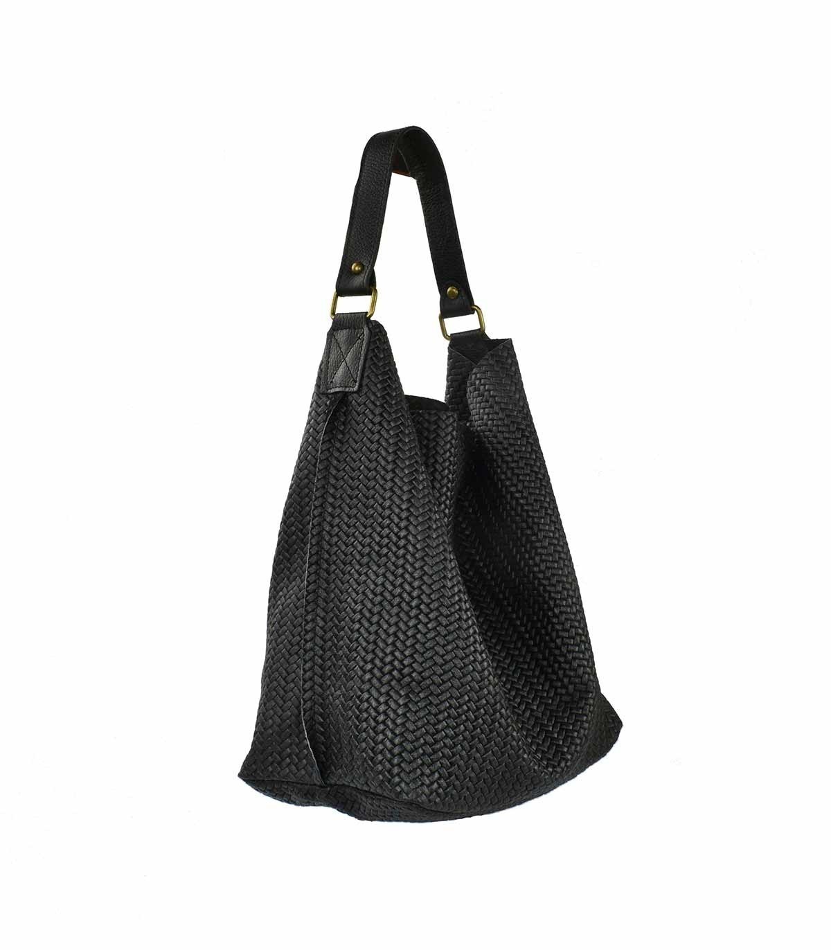 Χειροποίητη δερμάτινη τσάντα με πλεκτή υφή