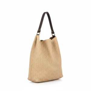 Αυτή η εκλεπτυσμένη τσάντα ώμου από σουέτ δέρμα με πλεκτή υφή συνδυάζει διαχρονική κομψότητα με μοντέρνα λειτουργικότητα. Κατασκευασμένη από υψηλής ποιότητας σουέτ δέρμα, διαθέτει περίτεχνη χειροποίητη υφή που προσδίδει βάθος και χαρακτήρα στον σχεδιασμό της. Η ευρύχωρη, αδόμητη σιλουέτα της προσφέρει άφθονο χώρο για τα καθημερινά απαραίτητα, καθιστώντας την ιδανικό σύντροφο για τη δουλειά, τα ψώνια ή τις χαλαρές βόλτες. Η απαλή και ευέλικτη κατασκευή της εξασφαλίζει άνετη μεταφορά, ενώ οι σκούρες δερμάτινες λαβές, στερεωμένες με μεταλλικές λεπτομέρειες σε απόχρωση ορείχαλκου, προσθέτουν μια εκλεπτυσμένη πινελιά και σταθερό κράτημα. Με μια ζεστή, γήινη απόχρωση που συμπληρώνει κάθε εμφάνιση, αυτή η τσάντα tote αποτελεί μια στιλάτη και πρακτική επιλογή για όσους εκτιμούν την ανεπιτήδευτη πολυτέλεια.