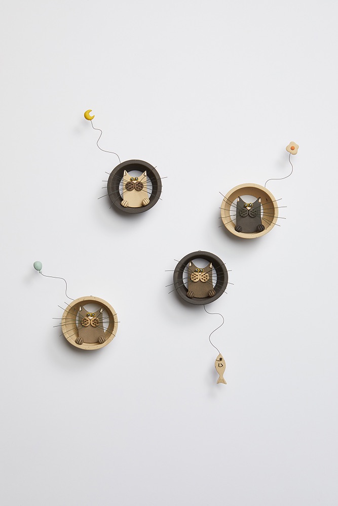 Χειροποίητη επιτοίχια κεραμική γάτα