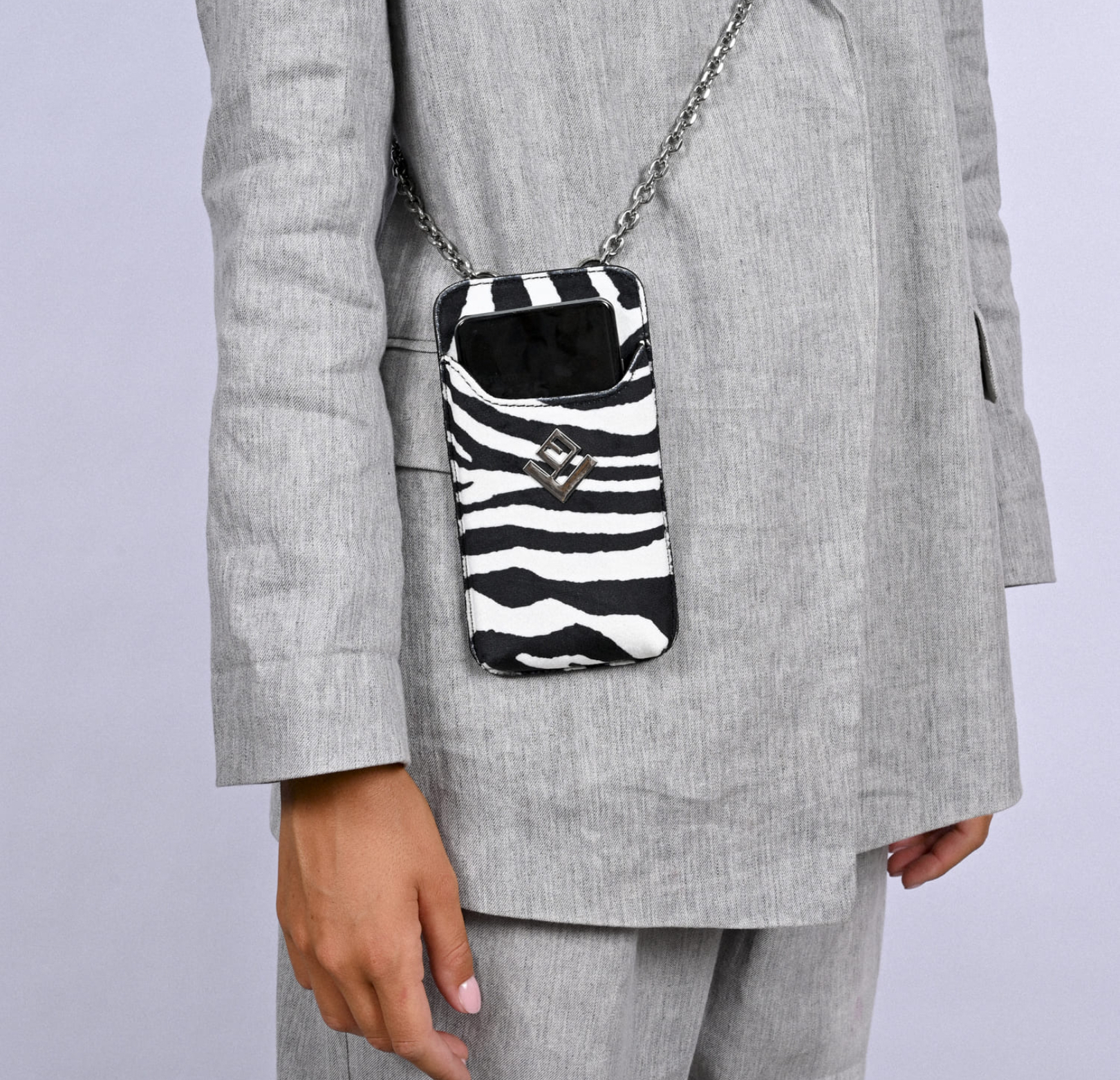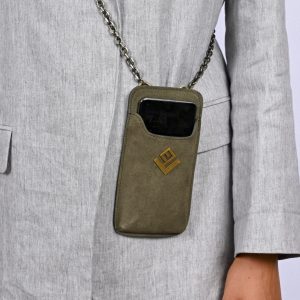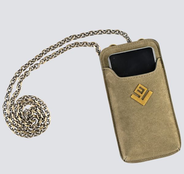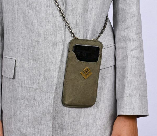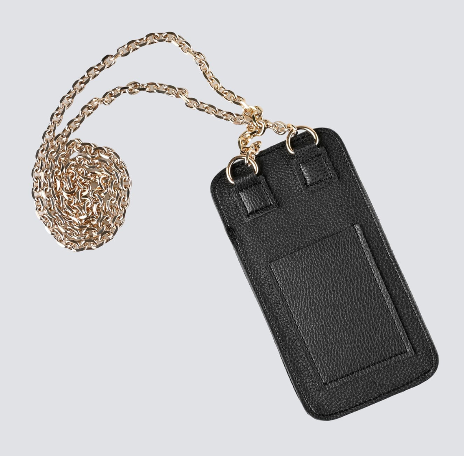 Η Celly είναι ένα ιδιαίτερο τσαντάκι λαιμού, εμπνευσμένο από την classy αισθητική της νέας μας συλλογής.Στο εσωτερικό του θα χωρέσει άνετα το κινητό σου και διάφορα μικροαντικείμενα, ενώ στο πίσω μέρος οι θήκες για κάρτες θα σου φανούν απίστευτα χρήσιμες. Θα λατρέψεις το κράτημα της στον λαιμό ή χιαστί με την premium μεταλλική αλυσίδα.