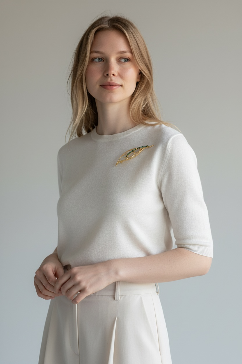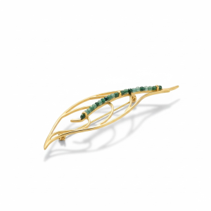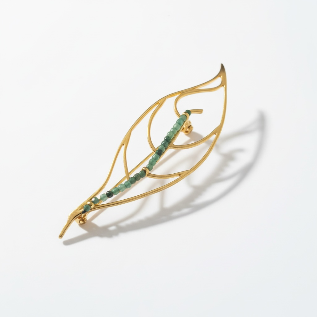 Χειροποίητη καρφίτσα πέτου σε σχήμα φύλλου από ασήμι 925 επιχρυσωμένο και ημιπολύτιμες πέτρες