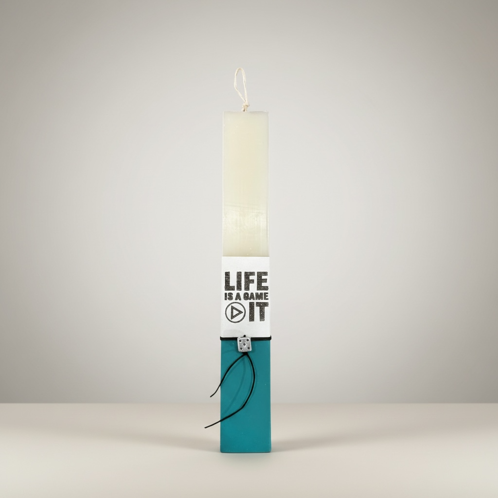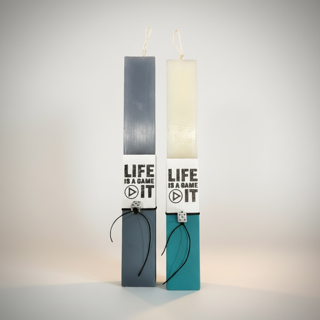 Χειροποίητη πασχαλινή λαμπάδα με μεταλλικό στοιχείο ζάρι