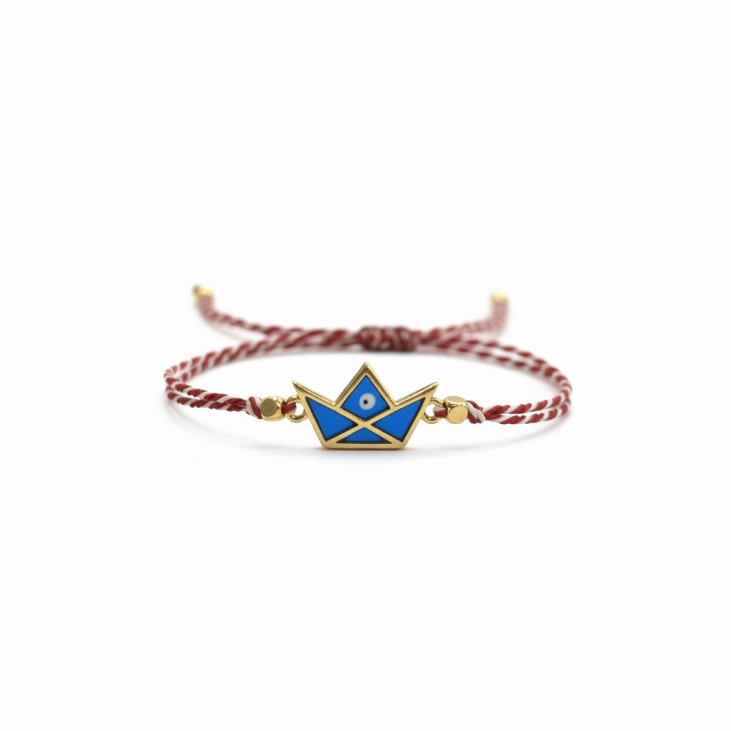 Χειροποίητο βραχιόλι για τον Μάρτη με μεταλλικό στοιχείο καραβάκι επιχρυσωμένο με 24Κ χρυσό και μπλε σμάλτο
