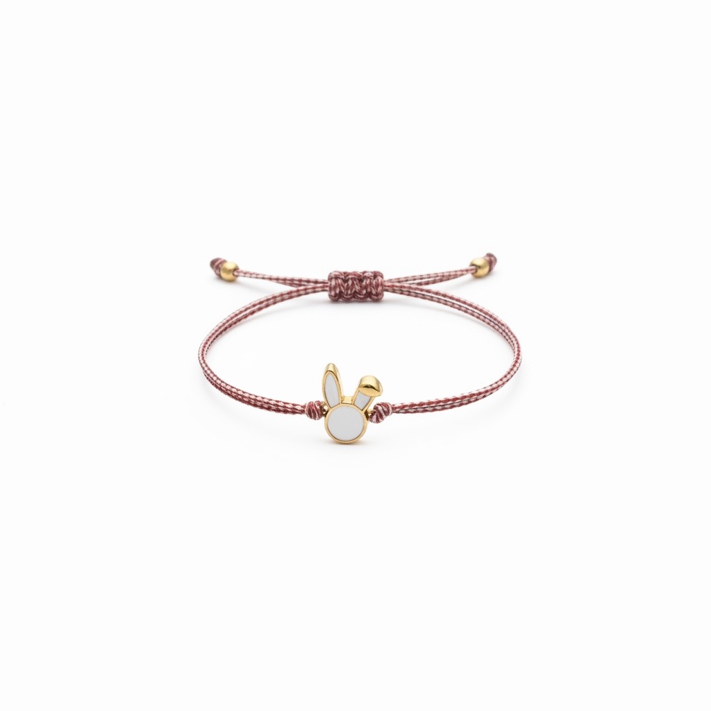 Χειροποίητο βραχιόλι για τον Μάρτη με μεταλλικό στοιχειο rabbit επιχρυσωμένο με 24K χρυσό και λευκό σμάλτο