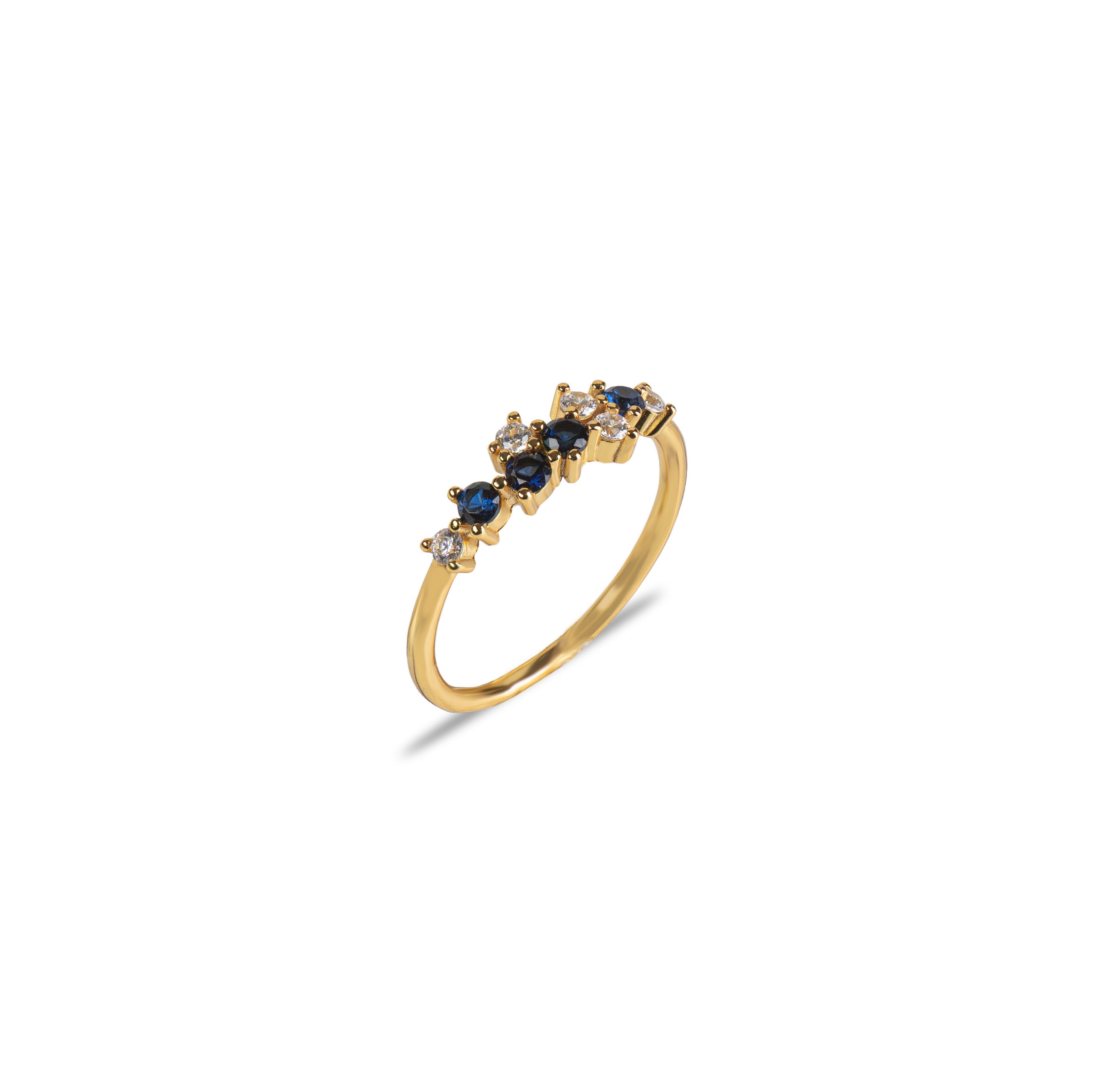 Χειροποίητο δαχτυλίδι σε ασήμι 925 επιχρυσωμένο με λευκά και μπλέ ζιργκον