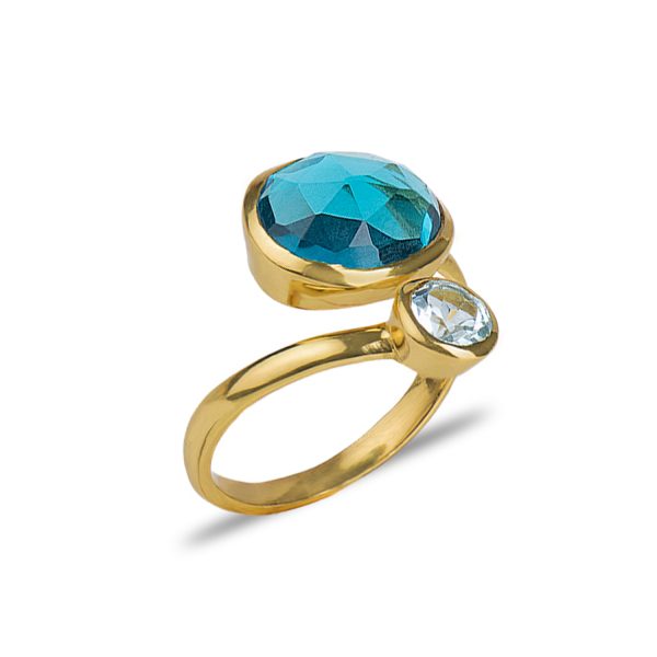 Χειροποίητο δαχτυλίδι με ημιπολύτιμες πέτρες,sky και London blue topaz και σε ασήμι 925 επιχρυσωμένο.