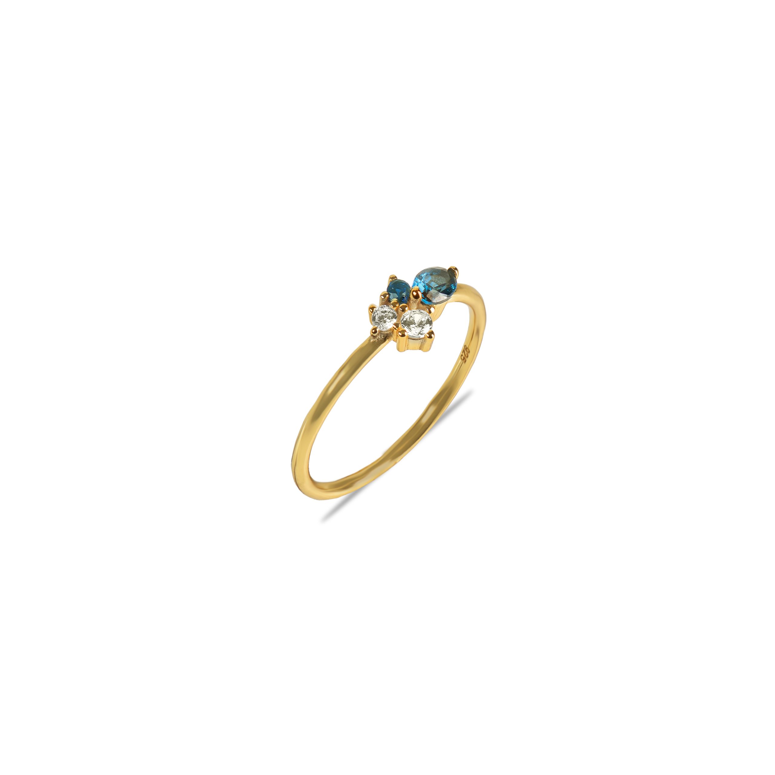 Χειροποίητο δαχτυλίδι σε ασήμι 925 επιχρυσωμένο με λευκά και μπλέ ζιργκον