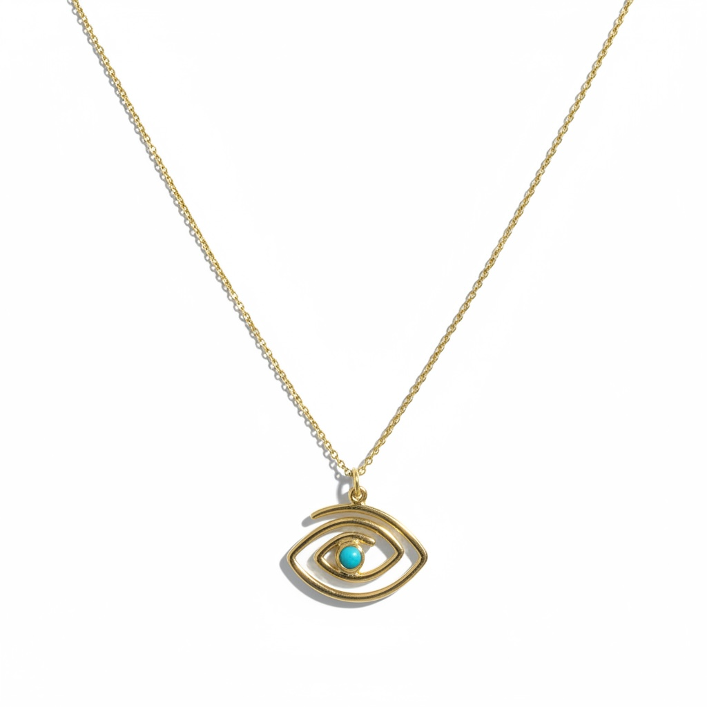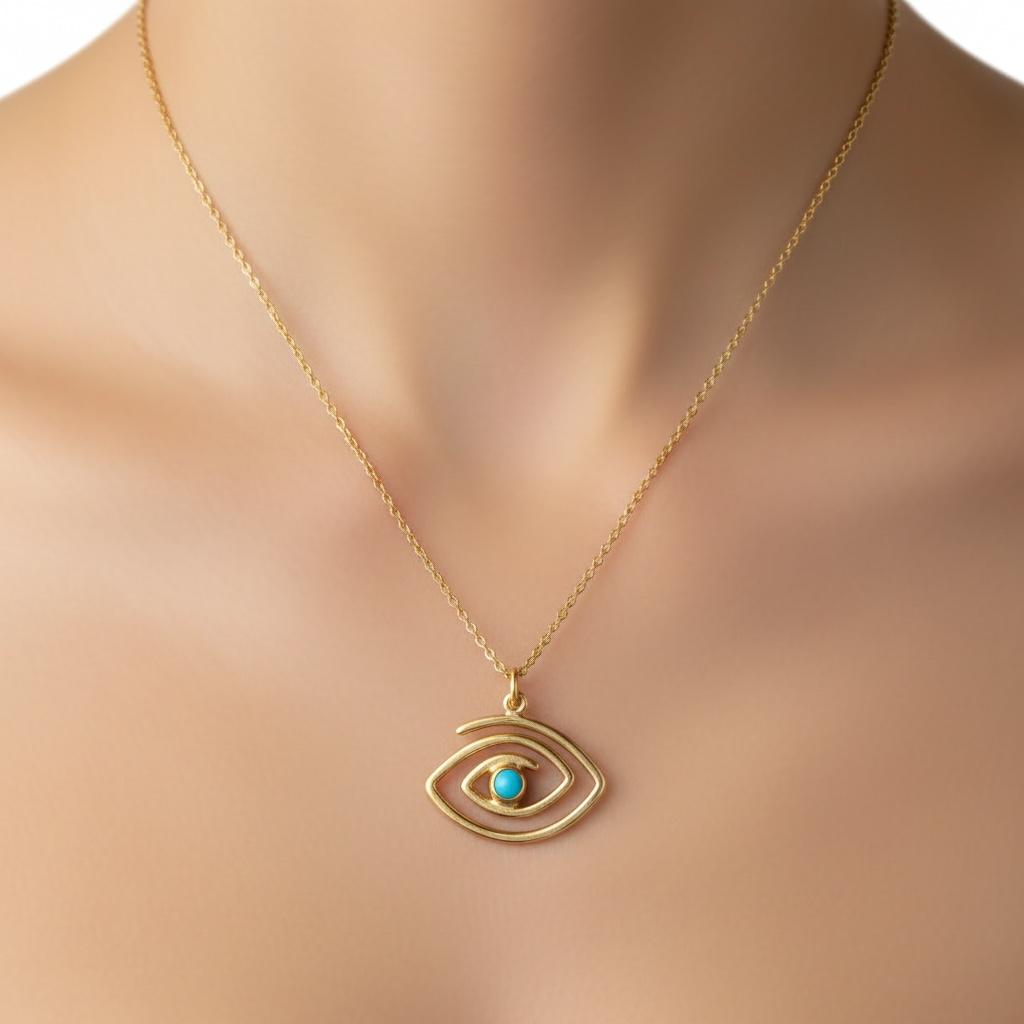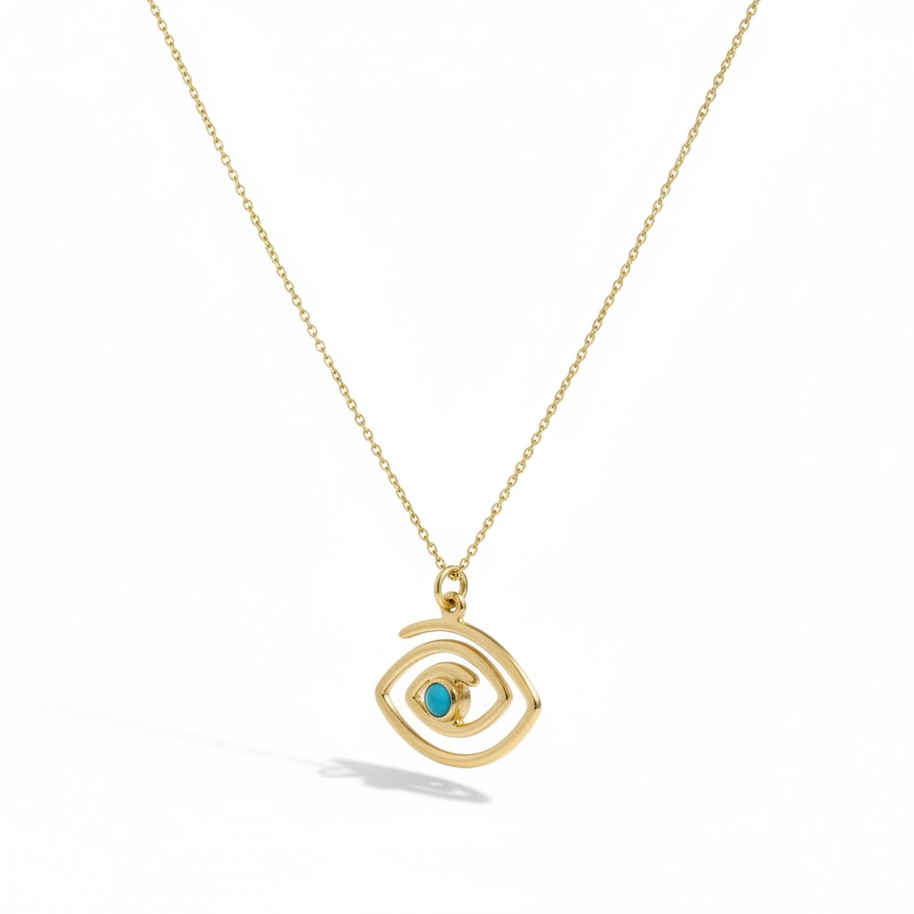 Χειροποίητο μενταγιόν μάτι με τυρκουαζ σε ασήμι 925 επιχρυσωμένο