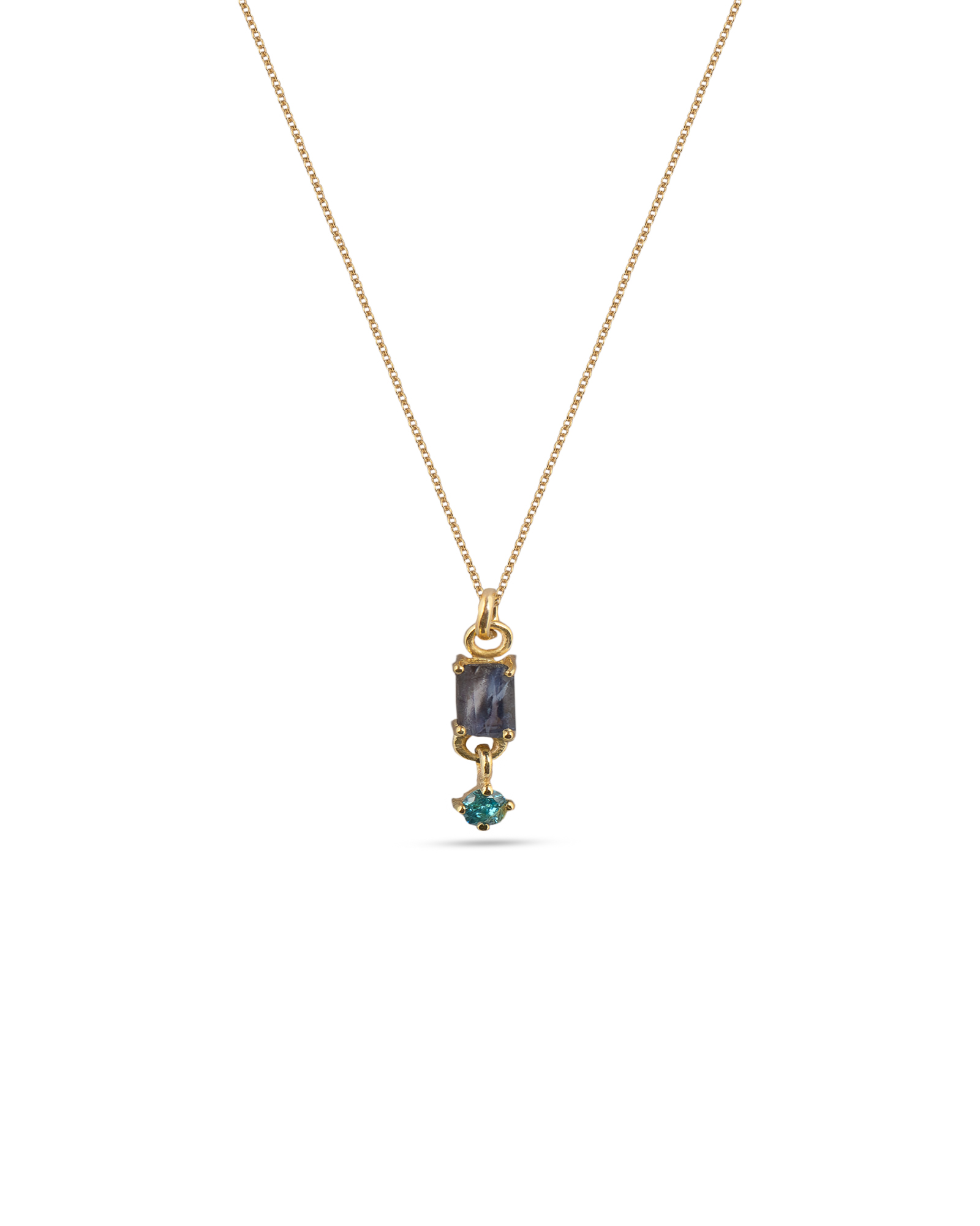 Χειροποίητο μενταγιόν με ημιπολύτιμες πέτρες Ιολιτη και blue topaz σε ασήμι 925 επιχρυσωμένο
