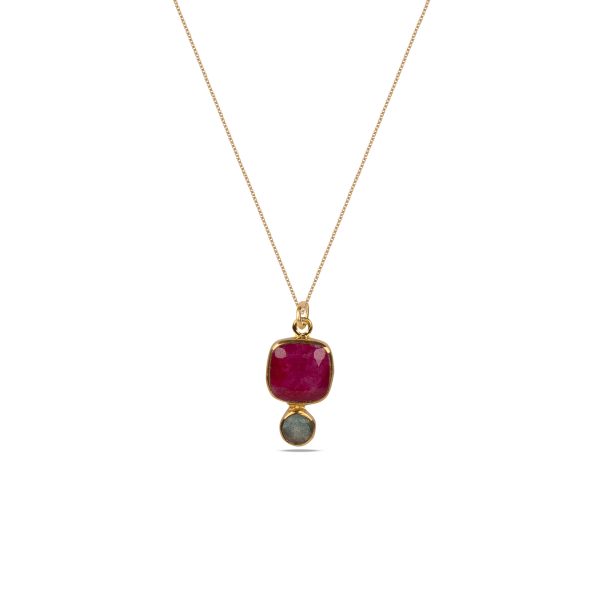 Χειροποίητο μενταγιόν με ημιπολύτιμες πέτρες ruby και labradorite σε ασήμι 925 επιχρυσωμένο