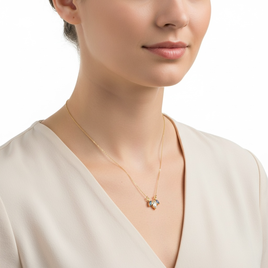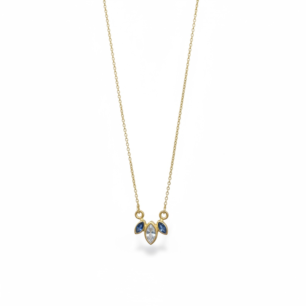Χειροποίητο μενταγιόν με ημιπολύτιμες πέτρες,blue topaz και London blue topaz σε ασήμι 925 επιχρυσωμένο