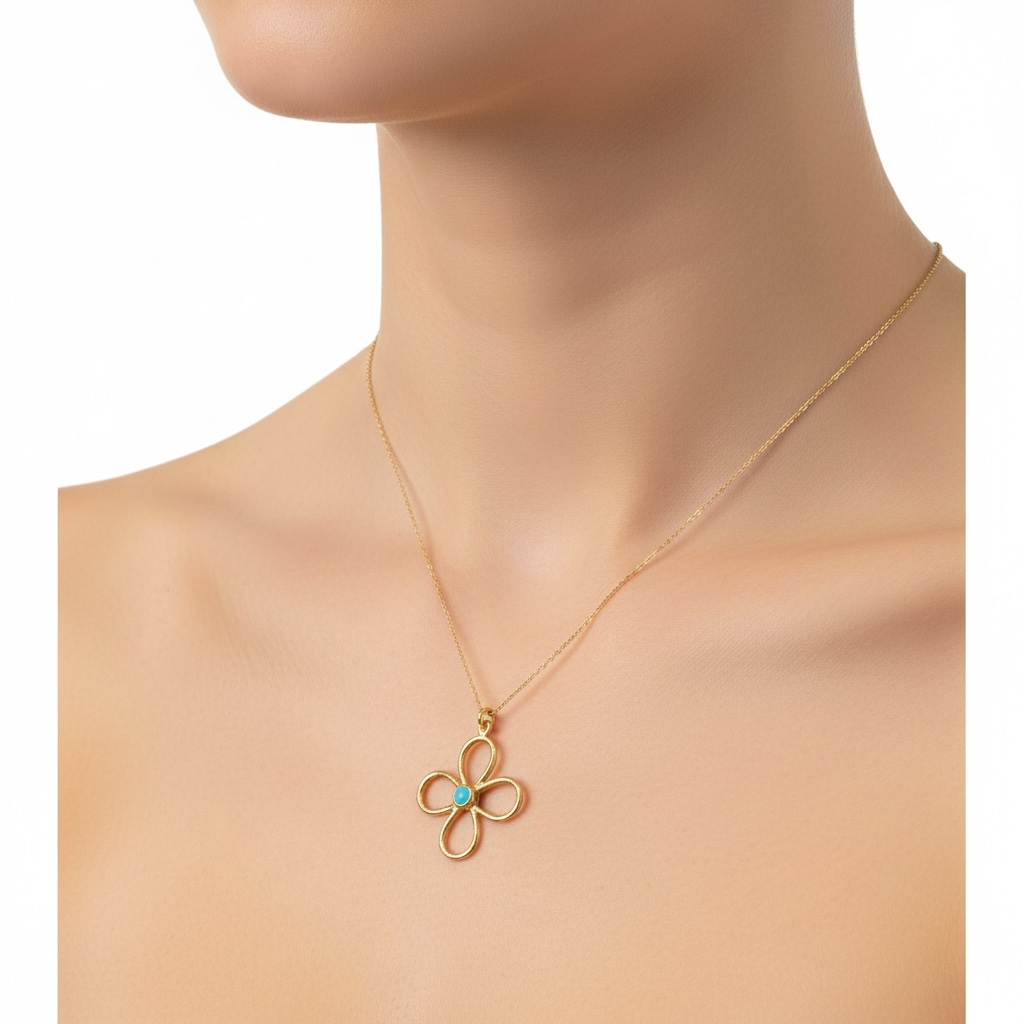 Χειροποίητο μενταγιόν σταυρός με τυρκουαζ πέτρα σε ασήμι 925 επιχρυσωμένο o