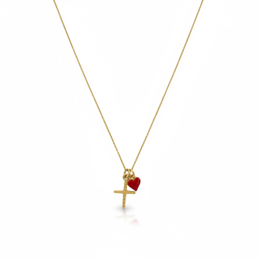 Χειροποίητο σταυρουδάκι σε ασήμι 925 επιχρυσωμένο και καρδιά σε κόκκινο σμάλτο