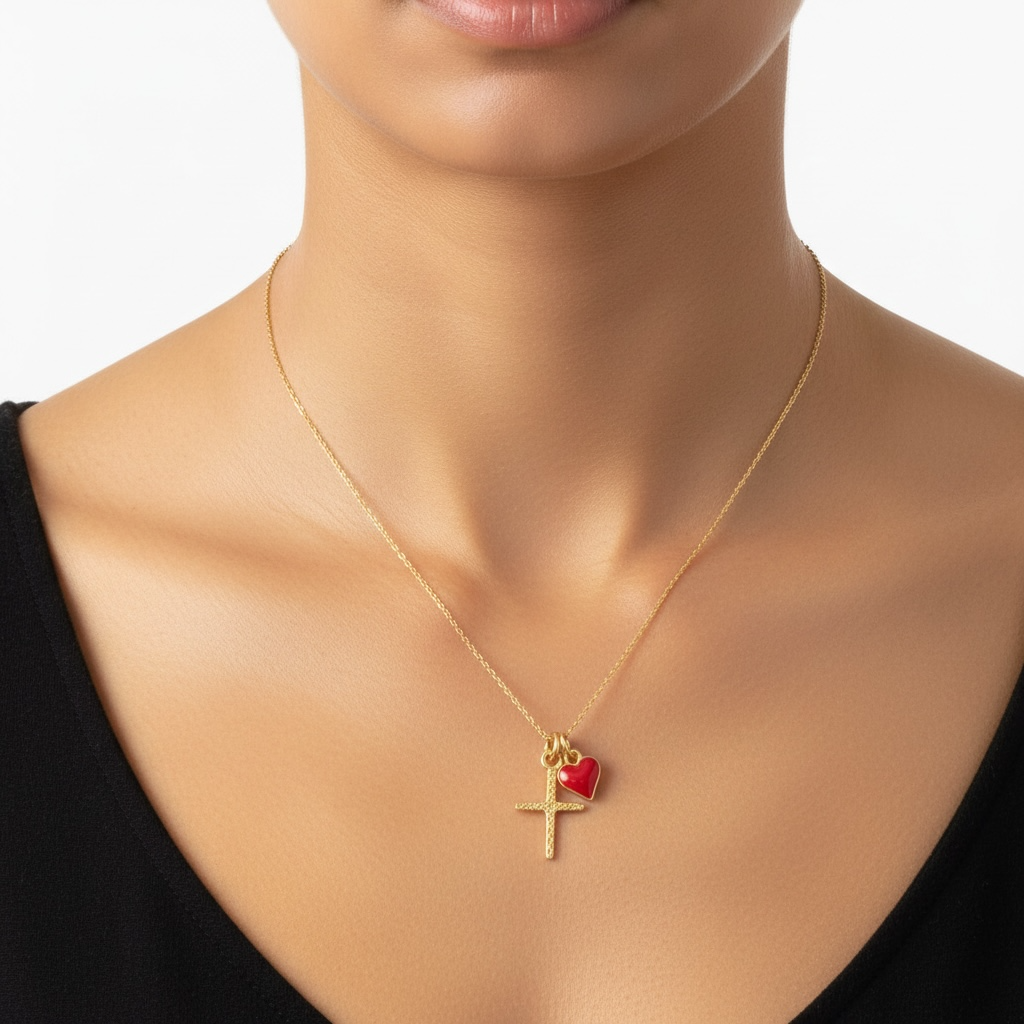 Χειροποίητο σταυρουδάκι με καρδιά σε κόκκινο σμάλτο