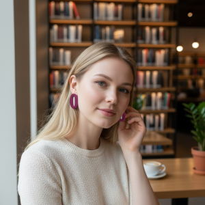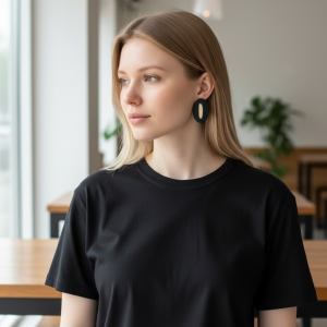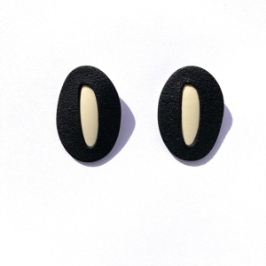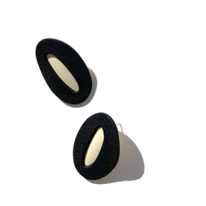 Χειροποίητα μεγάλα σκουλαρίκια φτιαγμένα από πολυμερικό πηλό σε οβαλ σχήμα με διακριτική συστροφή και μίνιμαλ design σε συνδυασμό χρωμάτων μαύρο και εκρού ή μπορντό και υπόλευκο γρανίτη.