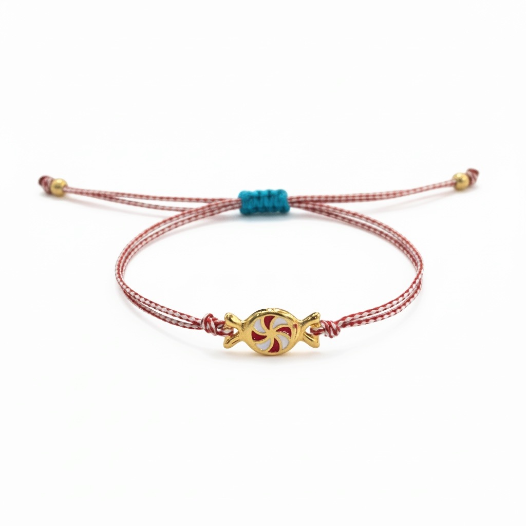 Χειροποίητο βραχιόλι για τον Μαρτη με μεταλλικό στοιχείο καραμέλα επιχρυσωμένο με 24Κ και σμάλτο