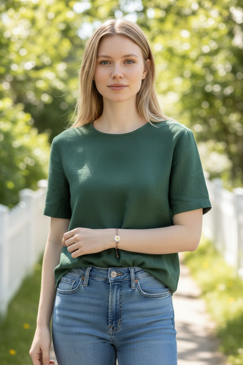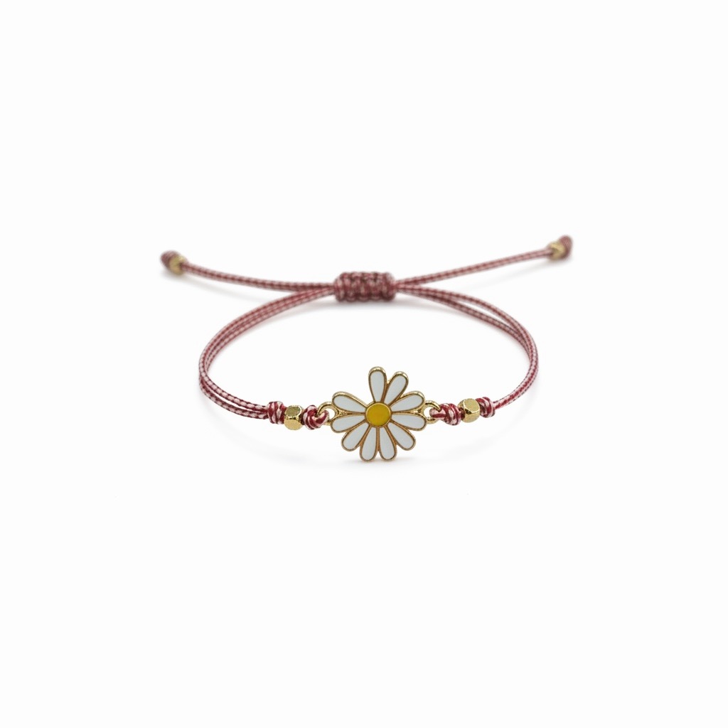 Χειροποίητο βραχιόλι για τον Μαρτη με μεταλλικό στοιχείο μαργαρίτα επιχρυσωμένη με 24Κ και σμάλτο